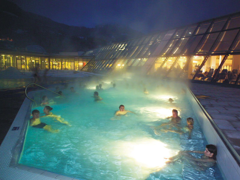 Die Alpentherme Gastein - nur wenige Gehminuten vom Hotel Alte Post Gastein entfernt - bietet sechs Erlebnis- und Gesundheitswelten auf 32.000 m² mit einem einzigartigen 360° Alpenpanorama, einer Saunawelt mit Bergsee, Ruhe- und Wellness-Oasen, Multimedia Erlebnisdom, tollen Wasserrutschen, Geysiren und der Cocktailbar & Lounge ICE Cube.